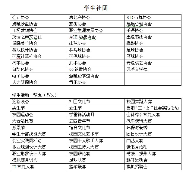 活跃的社团活动是校园文化中靓丽的一景,学生社团有专业技能型社团和兴趣爱好型社团。在学校里,你可以做一些自己想做的事,加入社团就是比较明智的选择,满足自己爱好,还可以交志同道合的朋友。